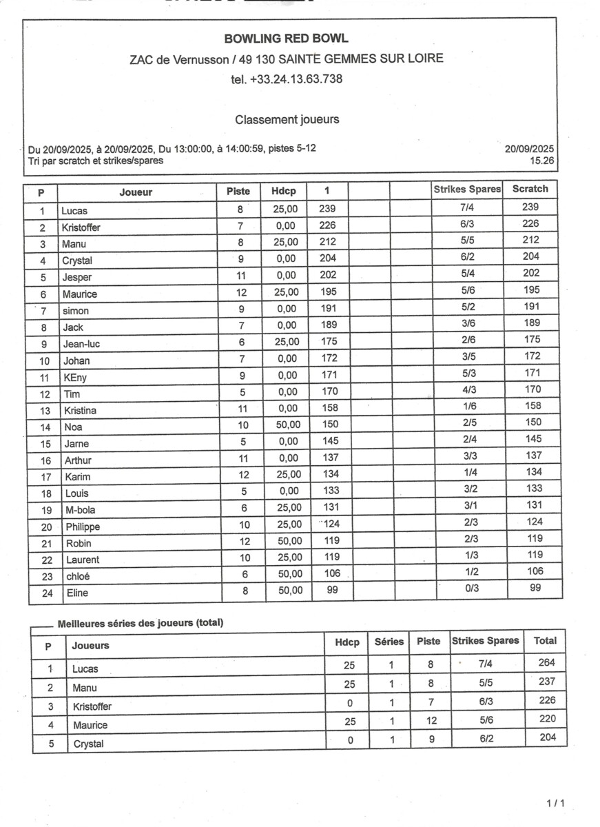 Ce tournoi restera comme un moment fort de la saison, où le bowling a prouvé une fois de plus qu’il est bien plus qu’un sport : un vecteur de lien, d’apprentissage et de plaisir partagé.