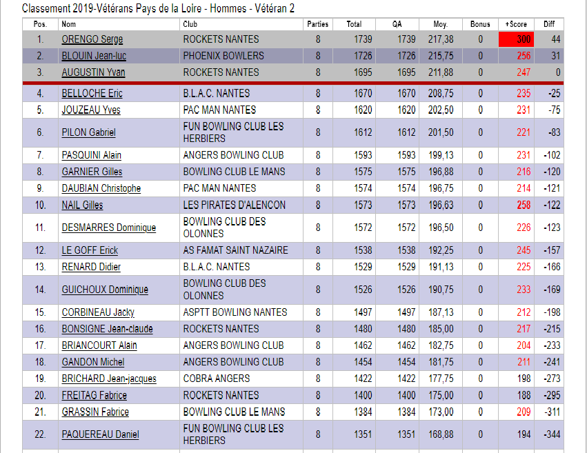 Nouveau podium pour les Phoenix Bowlers grâce à notre Champion Jean-Luc Blouin qui revient avec le titre de Vice Champion régional. Nouvelle étape en vue de l'ultime étape pour le titre de Champion de France. Nous pouvons remarquer que le podium n'était pas des plus facile à atteindre avec pour le Champion régional une partie parfaite à la clé ; malgré cela, seulement 13 quilles sépare Jean-Luc du Champion ce qui n'est pas grand chose.
