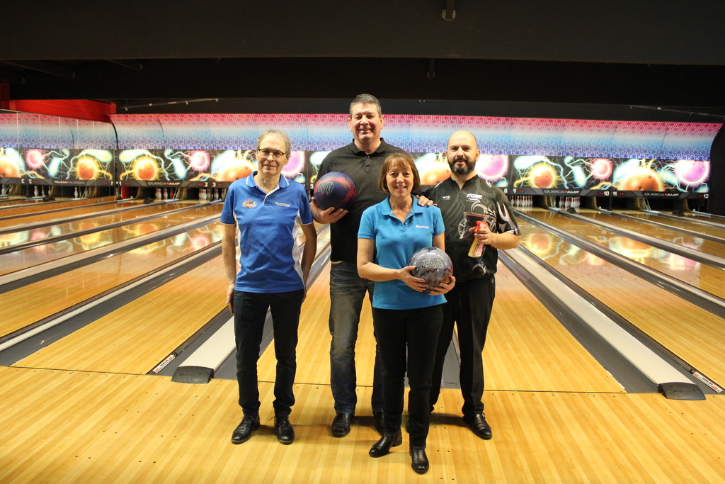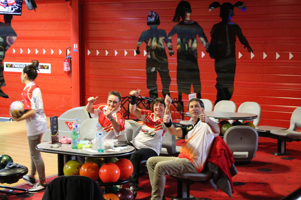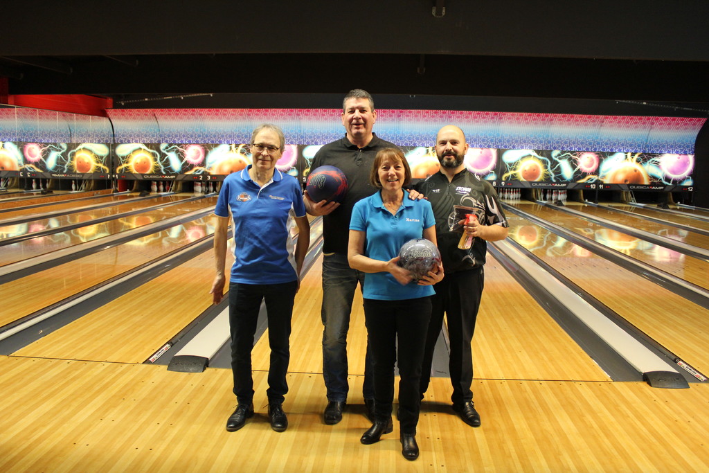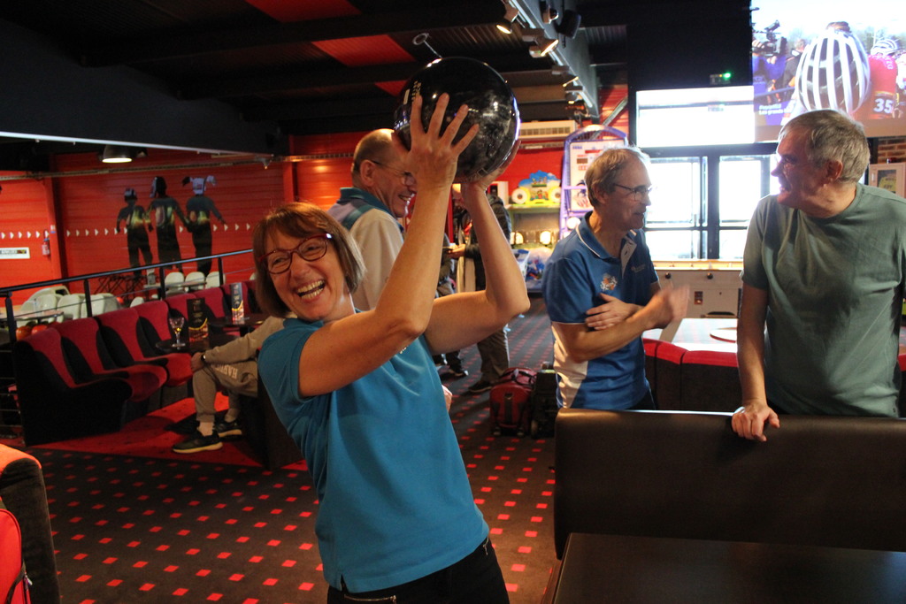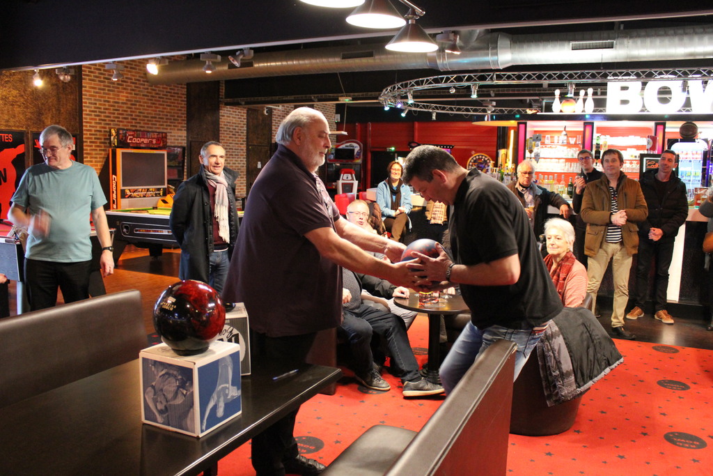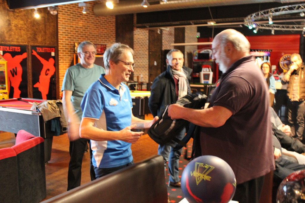 Chartier Laurent, Saillard Alain, Magin Max, les gagnants du Tournoi des Ducs. Martine Joyeau, la gagnante du tirage au sort qui gagne une boule Tzone.